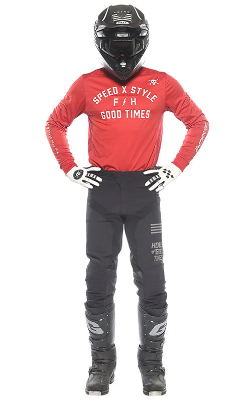 Rider/model is 5'11", 170 lbs wearing medium jersey and size 30 pants (*except Evans in the Helix Circuit & Rocko Kit)